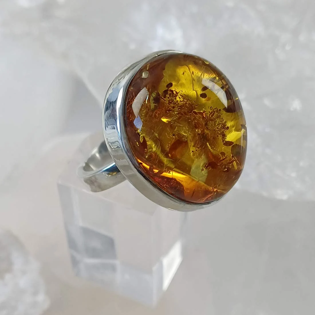 Many people ask what amber is used for in metaphysical practices. Amber is often associated with emotional warmth, cleansing energy, and grounding. Additionally, people use amber to support calm thinking and emotional release. Is amber helpful during stressful periods? Many believe it supports steady energy flow, especially when worn as a statement ring close to the body.