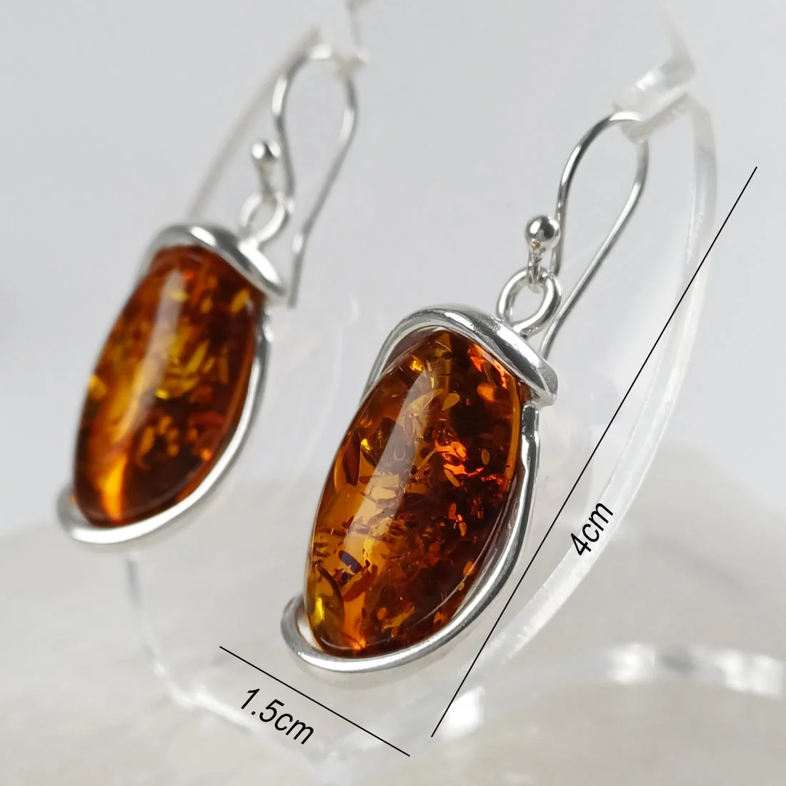 How can Amber Large Oval Earrings be worn? Their size makes them suitable as a focal accessory, while their warm tones pair easily with neutral and earth-colored clothing. Moreover, they work well with other silver jewelry without overpowering the look.