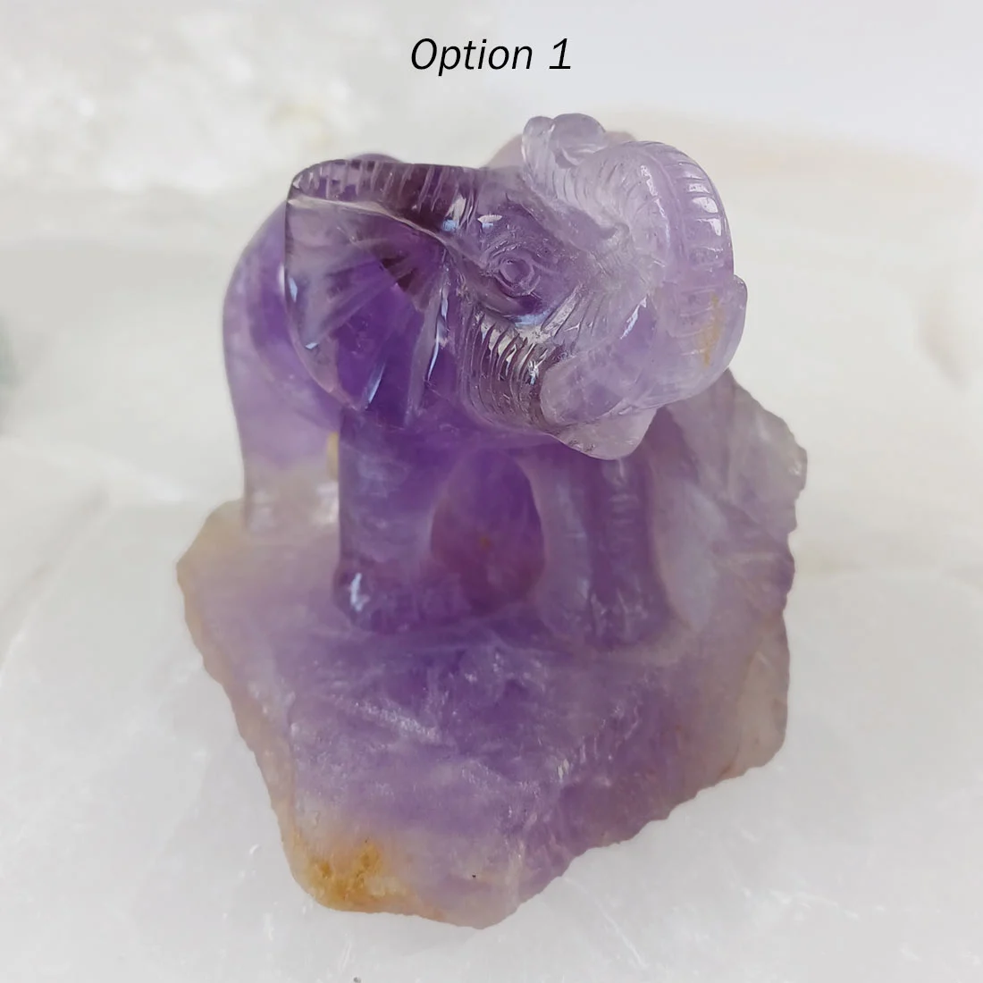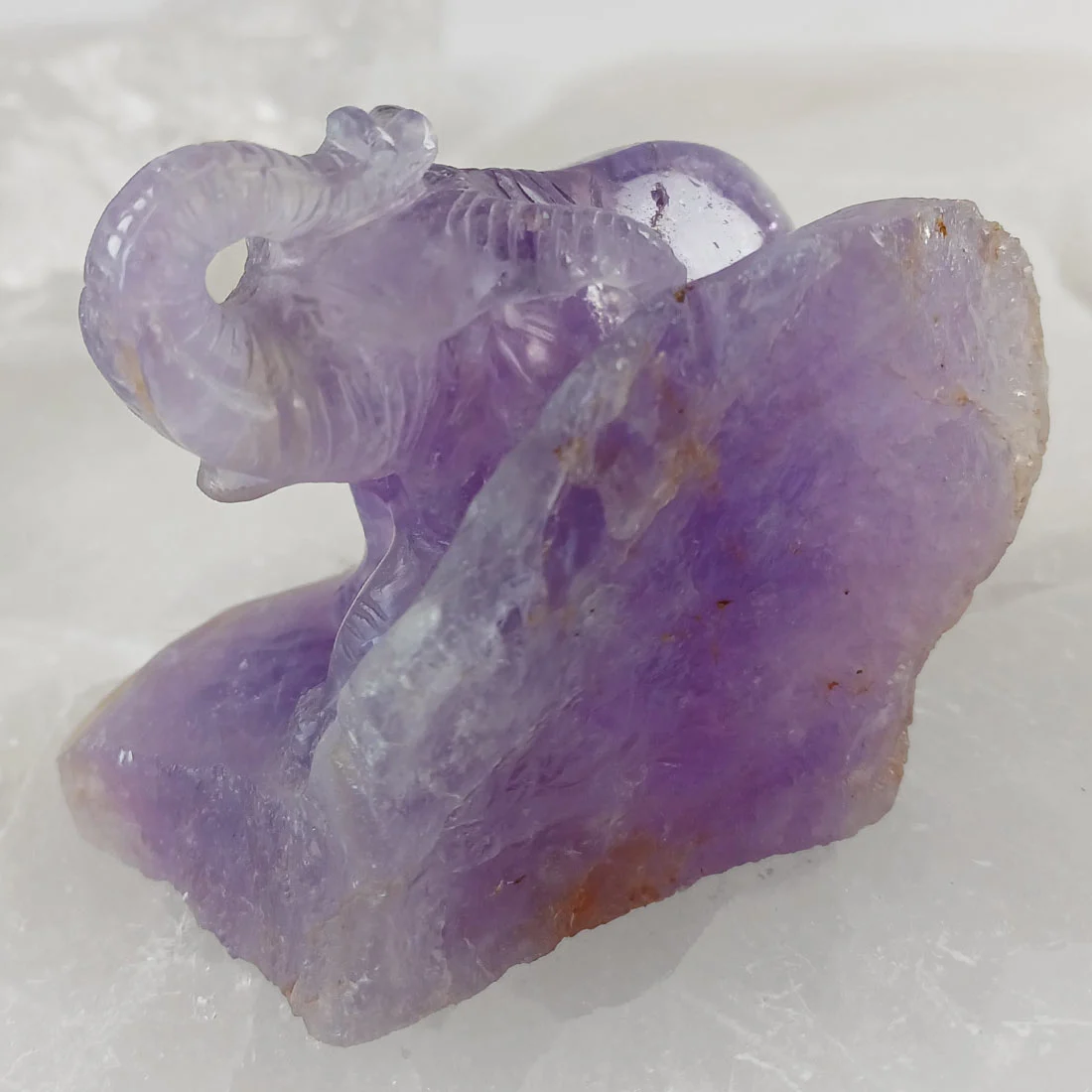 How do people usually place an amethyst elephant carving in their space? This type of carving is commonly used as a decorative object on shelves, desks, or small altars. Some people include stone carvings in meditation or quiet reflection areas. The elephant form is often chosen for its symbolic meaning in different cultural traditions.