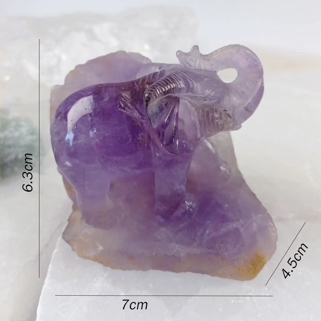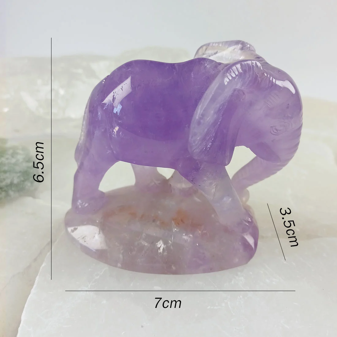 This special Amethyst Elephant Carving is a hand-carved decorative figure made from natural amethyst crystal. This product is a carved mineral piece shaped from amethyst, a purple variety of quartz. It is intended for display and personal spaces rather than wearable use.