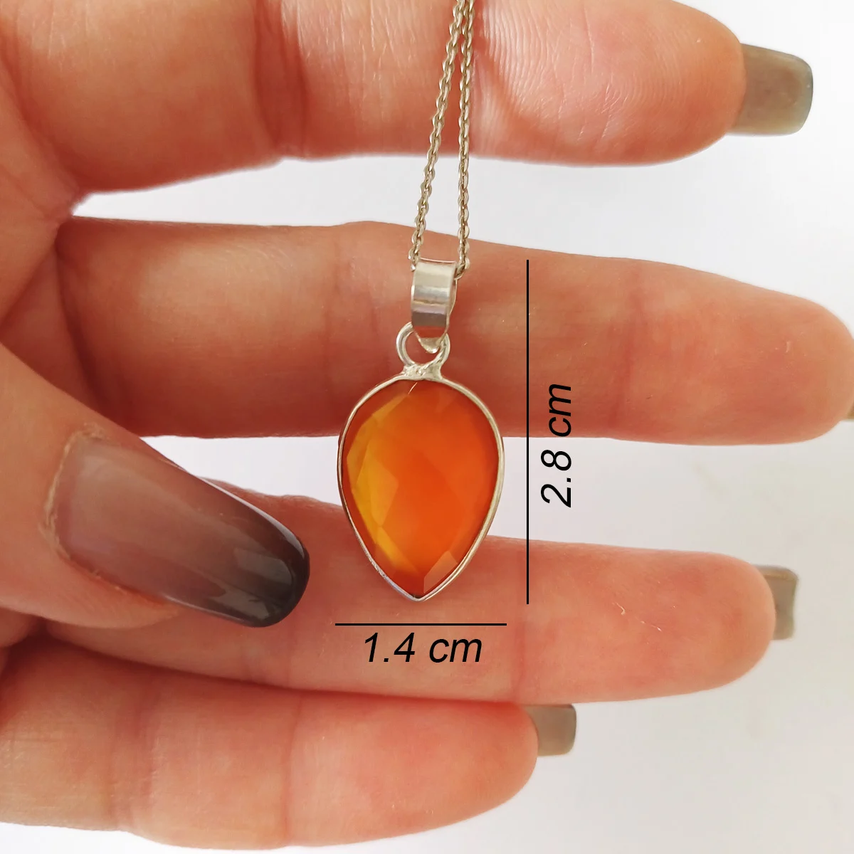 Ignite your inner fire with this elegant carnelian pendant, a symbol of courage and passion that adds warmth and energy to any outfit.
