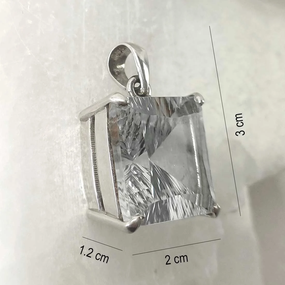 Clear Quartz Square Pendant – 925 sterling silver